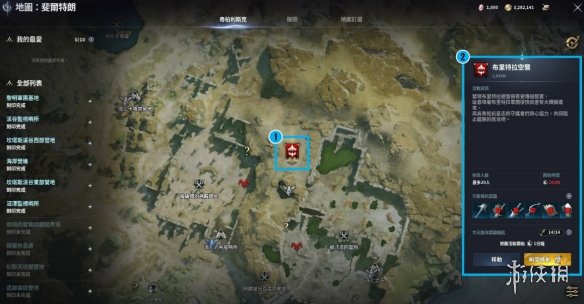 标记1表示区域首领信息,可在地图上通过图示确认区域首领所在的位置。