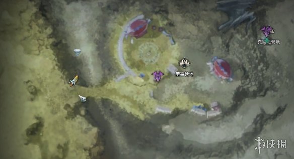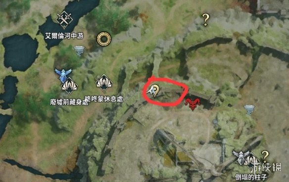 4、然后打开地图,前往奎灵营地左边小桥边,在右边向下看即可看到红宝石矿石,不断采集即可。