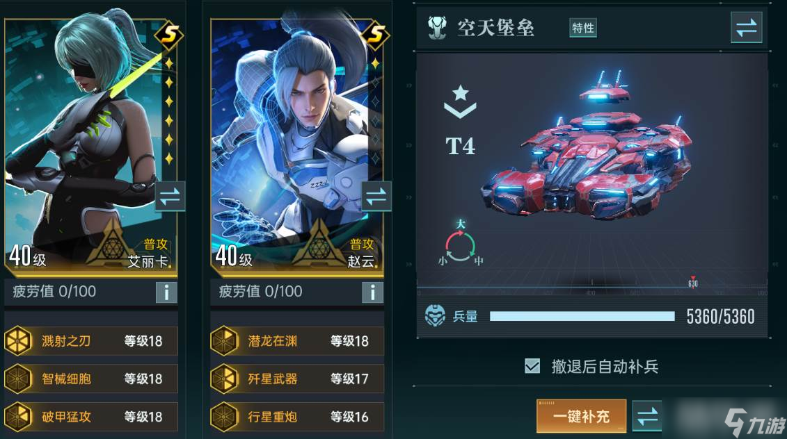 空天堡垒因为其高输出的特点,是玩家们最常用的兵种之一,在各种战斗中都会选择它进行出战。目前游戏中它最适合的队伍是艾丽卡+赵云的普攻队,艾丽卡拥有溅射能力,配合空天堡垒的多目标攻击特性,可以让敌方军团大范围迅速掉血。