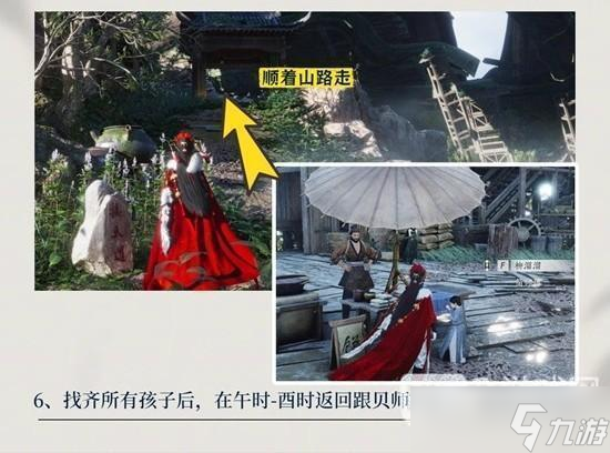 1、时间调整到午时-酉时,传到松风岗,前往左上角的村落,找到贝师姐对话两次,得知需要帮助她找三个小孩回来吃饭