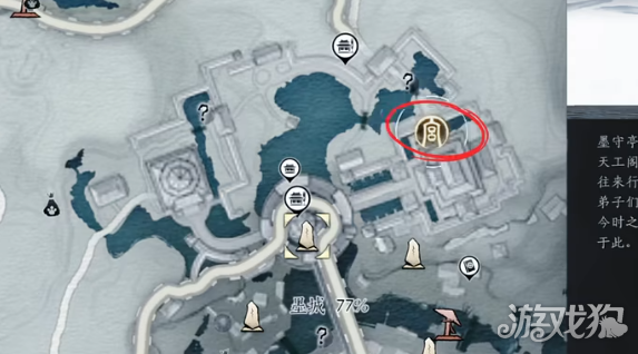 3、玩家将游戏时间调到丑时,从墨守亭前往画红圈的位置。