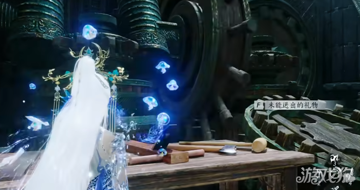6、在巨子青对战的场景中,左边的桌上可以发现任务物品【未能送出的礼物】。