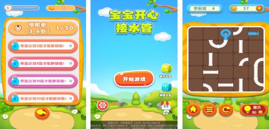 以管道连接为核心玩法的逻辑启蒙游戏。孩子通过旋转、拼接不同形状的水管组件,构建完整通路,达成水流输送目标。全程无时间限制,强调策略思考与空间判断。关卡设计逐级递进,从直线连接到多路径规划,稳步提升逻辑推理能力、手眼协调性与任务坚持力,契合大班儿童认知演进节奏。