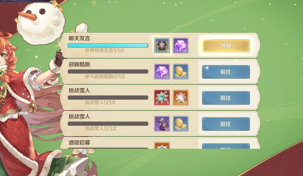 [挑战雪人] 每日派遣3队,挑战凶悍的雪人BOSS,获取特典彩晶、招募券、宝石重铸材料等奖励