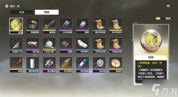 点击面板左上角三横图标即可浏览角色属性和隐喻收集情况