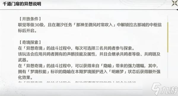 千道门扉的异想是《鸣潮》中每周都会刷新的常驻玩法,还有玩家不清楚千道门扉的异想要怎么玩,下面请看由“枫叶Mapleaf”为大家带来的《鸣潮》千道门扉的异想玩法解析,希望可以帮助到大家。