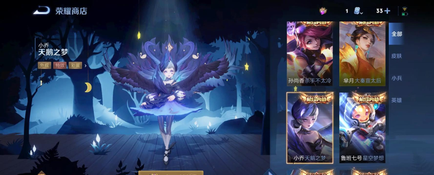 玩家可以在积分夺宝中通过抽奖获得荣耀水晶,荣耀水晶可以兑换典藏皮肤,第一颗水晶推荐换天鹅之梦,天鹅手感是小乔皮肤里最好的。
