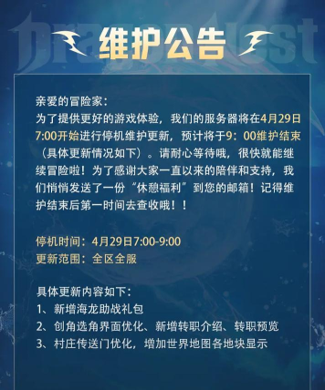 为了保证数据稳定,本次维护时间较长,维护结束后将开放24小时的战斗双倍声望和双倍掉落。