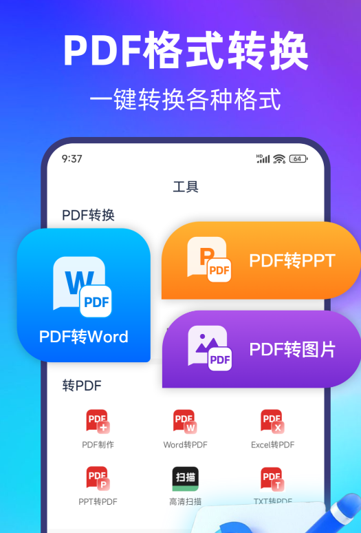 PDF转换宝是比较适合移动办公的,基本上手机上就可以支持一键使用,并且支持多个格式文件的转换,转换的速度较为快速,再加上能支持的格式文件很多,兼容性这块是值得信任的,同时软件的整体下载容量是很小的,还兼顾了专业性以及安全性,值得下载使用哦。
