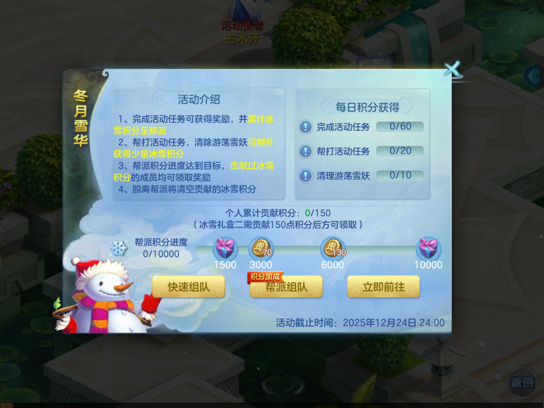 12月18日维护后至12月31日24:00,收集并上交雪球可获得奖励。
