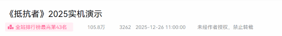 今日上午11点,国产抗战题材新游《抵抗者》发布全新实机预告。而截至目前,该预告B站播放量竟然在短短7小时内,突破100万大关,点赞超6万。