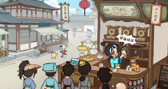 在这个开设过程中,大家可以逐步解锁一些现代才能看到的商品,就比如奶茶还有一些现代独有的经营概念,就比如砍一刀这种需要利用这些新的商品和概念去吸引游客,这就是游戏的玩法了,玩法来说看起来好像很吸引。