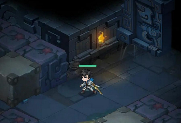然后是钥匙获取方法,这里需要将2个石块推到相应的按钮上,两个都推上去之后,后面的门就打开了。这个墓室里有不少解谜的东西,大家只要多留意一下地图上的元素就可以完成解谜。例如有的场景中的地面上的脚印,顺着脚印的方向走。