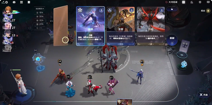 经济自然也不可忽视,累积的经济可用来购买卡牌,刷新商店,参与竞拍,提高棋手等级,但是这里积攒能量无法获得利息,卖出手里英雄只能低价处理;竞拍则是在每几个阶段对局开始前展开一次的,可以对出现的想要的卡牌竞拍。