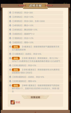 该武将的成长曲线呈现明显阶段性跃升——九星是质变分水岭。晋升九星后,“怒气窃取”效果升级为全额转移至己方攻击属性最高的武将,极大强化主C(如周瑜)的爆发衔接效率。后续晋升至名将一星、名将三星时,还将进一步提升怒气转化率与技能伤害系数,因此推荐养成路径为:优先达成九星,再推进至名将一星。潜能加点应聚焦暴击伤害、怒气获取效率等方向;鱼类搭配建议选用物攻向品种,包括帝王蟹、金鳟、锯鲨、梭鱼及大青蟹;装备与神兵词条优先选择物理攻击、暴击率、暴击伤害及怒气回复类属性,全面支撑大招高频释放与瞬间爆发输出。