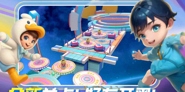 本作高度还原同名综艺节目的明快调性,采用高饱和度视觉设计,关卡融合动态平衡平台、随机障碍与限时挑战。玩家需操控角色跳跃、闪避并精准落点,双人同屏时可实时语音提示风险位置,亦能比拼通关效率;道具触发伴随夸张音效与粒子反馈,强化临场欢乐感与配合张力。