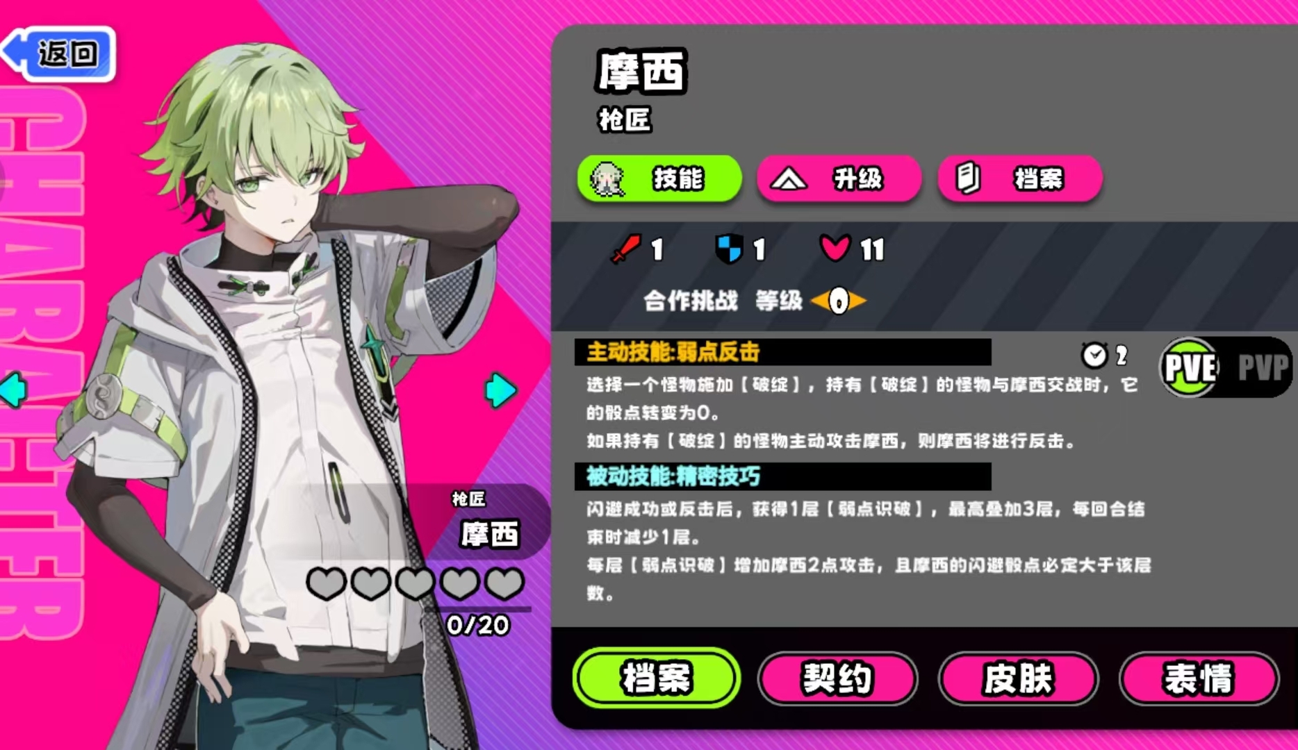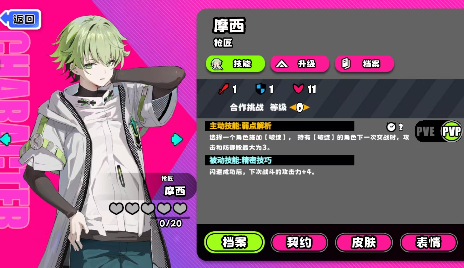 在合作模式中,摩西的成长曲线呈现明显的阶段性特征:随战斗推进不断累积“弱点识破”层数。其主动技释放后,被选中的怪物将进入“破绽”状态——该状态下,怪物所有投掷点数强制归零,同时若其主动攻击摩西,将立即触发一次反击判定。被动技“精密技巧”则规定:每次成功闪避或完成反击动作,均可叠加1层“弱点识破”,上限为3层;每层提供+2攻击力加成,且该层数会在回合结束时自然衰减1层。此机制构成“触发—增益—消耗”的闭环循环,形成可持续强化的输出节奏。