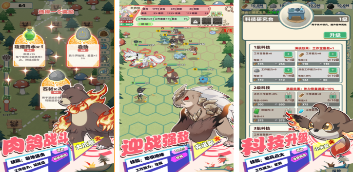 本作开创性融合Roguelike、宠物收集与六边形自走棋三大玩法模块。地图采用标准六角网格结构,符合硬核自走棋玩家的操作直觉。科技树系统支持多路径角色强化,宠物捕捉机制拓展了阵容构筑维度。每局对战均伴随随机事件、道具掉落与难度递进,显著增强重复游玩价值。战斗视觉表现张力十足,策略自由度处于同类产品前列。