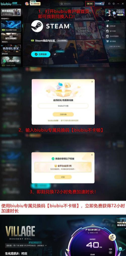 完成安装后,用户可立即领取biubiu提供的累计96小时免费加速权益:注册账号即赠24小时新手加速时长;登录客户端后,在首页“兑换”入口输入激活码【biubiu不卡顿】,额外获得72小时加速服务。两阶段权益叠加,确保玩家在冬促期间高效获取并流畅运行《生化危机8:村庄》及其他热门大作。该限时福利覆盖全部Steam平台游戏,且加速状态全程保持后台静默运行,不干扰系统资源调度。