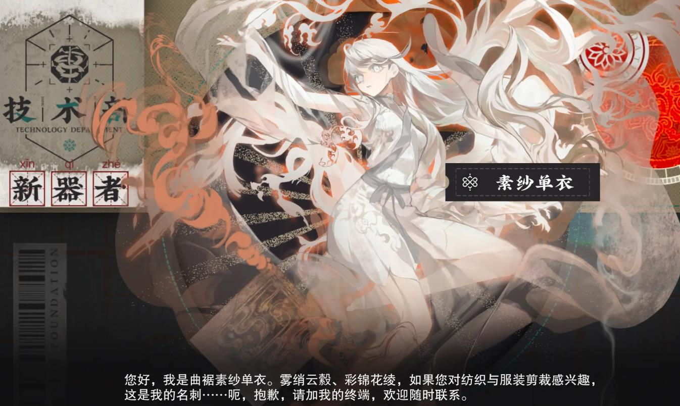 素纱单衣是远程支援型的治疗角色,可以让多名队友获得必定的闪避与减伤。被其附加纱衣的队友会坦度飙升,且当血量低于百分之三十时直接回满,并获得大量的构素护盾。在实战的时候该角色更像是专属防具,特别是对于冲锋陷阵的轻锐角色,不仅会解决了生存上的问题,还能获得四成局内攻击与两成物理伤害提升。增益型稍微略弱于两层的蓄势与啸剑,被随行的队友在攻击距离自身两格敌人时,单衣也会对其周围敌人造成构素伤害。