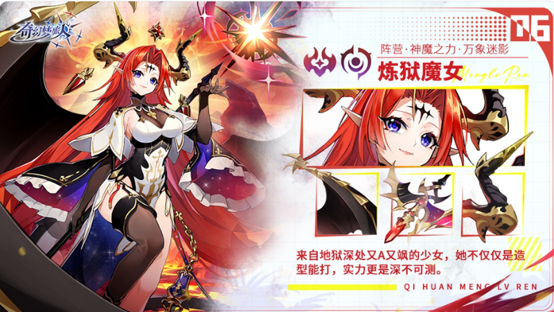次推神使为烈焰魔女莉薇尔。该角色可通过常规活动稳定获取,无概率依赖。其核心机制围绕“魔神附体”展开,可主动清除我方全体负面状态,并提供可观的伤害减免效果,属于典型的战术型辅助输出者。在魔法伤害维度上,她具备稳定的AOE打击能力,适配多种副本场景。