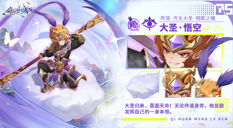 齐天大圣的第一重专属羁绊为“暗影之源”。此羁绊激活后可触发变身效果,生成多个持续作战的召唤单位,形成多线施压。即使单人出战,亦可独立激活该羁绊,并进一步联动“暗影之瞳”元素效果——对受击目标施加持续诅咒,实现稳定的DOT(持续伤害)输出,强化中后期续航压制能力。