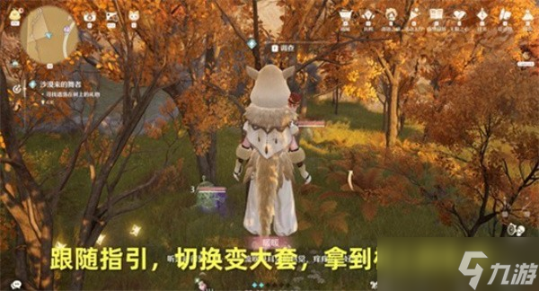 4、根据指引寻找遗落在树上的礼物,切换变大套装,从树上取得礼物