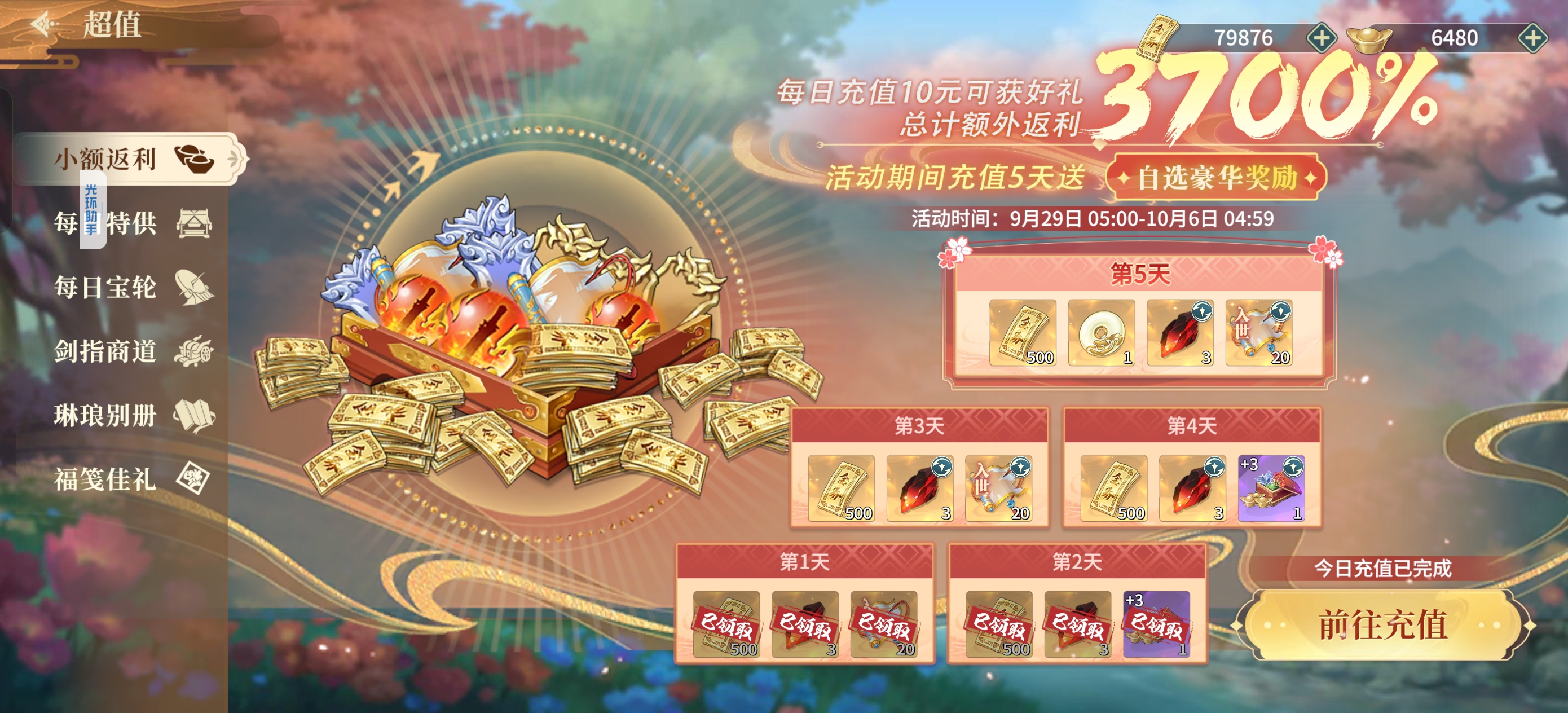 再往上我就不说那么细了,大家量力而行就好。元宝直购的礼包里心法礼包是必须买的,新版本心法差距拉开了就是天堑,战令也是补金券的主要方式,秋水令斗酒令之类的礼包不要买,凌云晶前期可以买,装备相关的资源只缺赤精,别的都没必要氪金买。