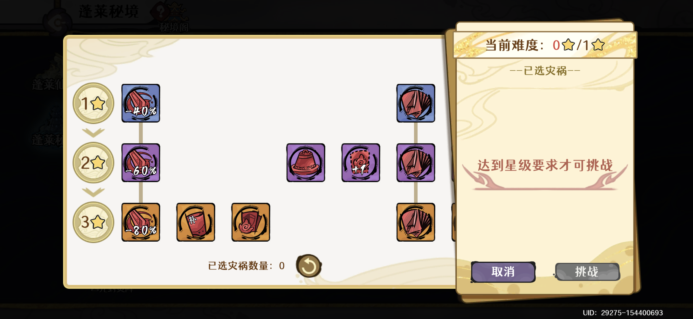 玩法限制:进入需要选择灾祸,1层需要1星灾祸,2层需要2星灾祸,以此类推,35层需要35星灾祸,45星上限,即:45层以后满灾祸。