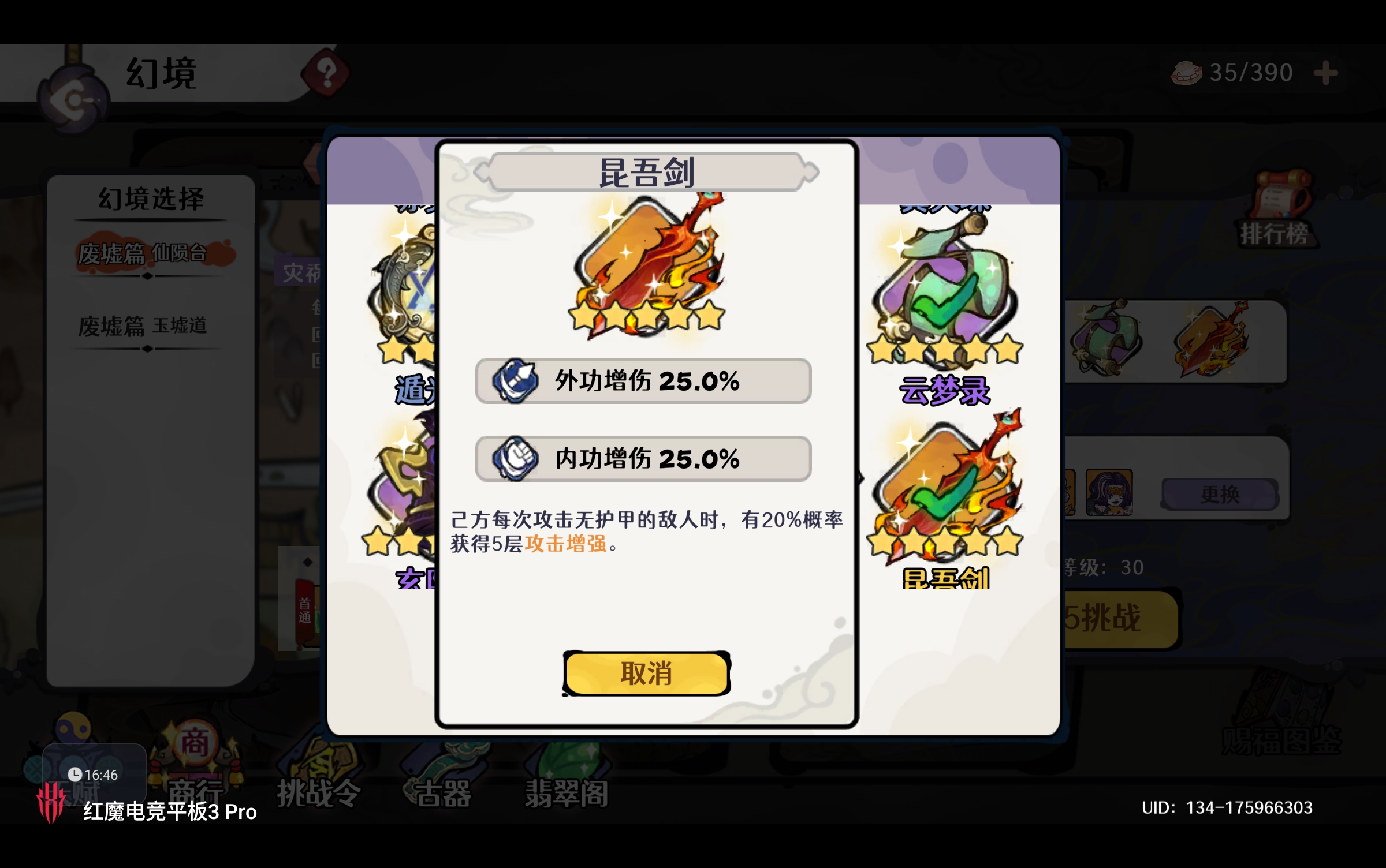 顶端无尽模式,将赤霄替换为 昆仑(防御类顶级神兵,而且可白嫖获取)