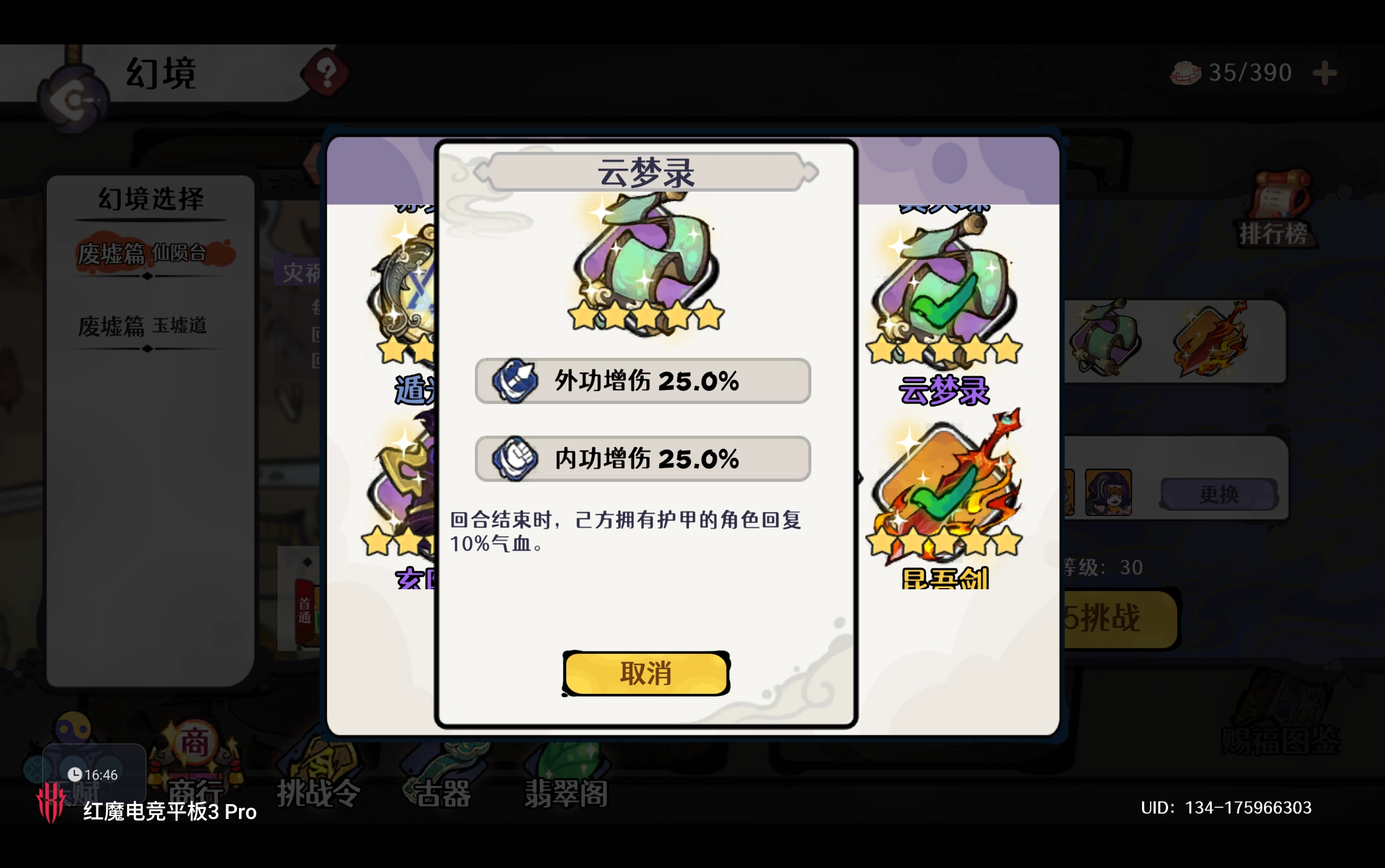 古今2-风起蓬莱【自动剑魔】幻境废墟篇 无尽模式冲榜攻略(上篇)如下: