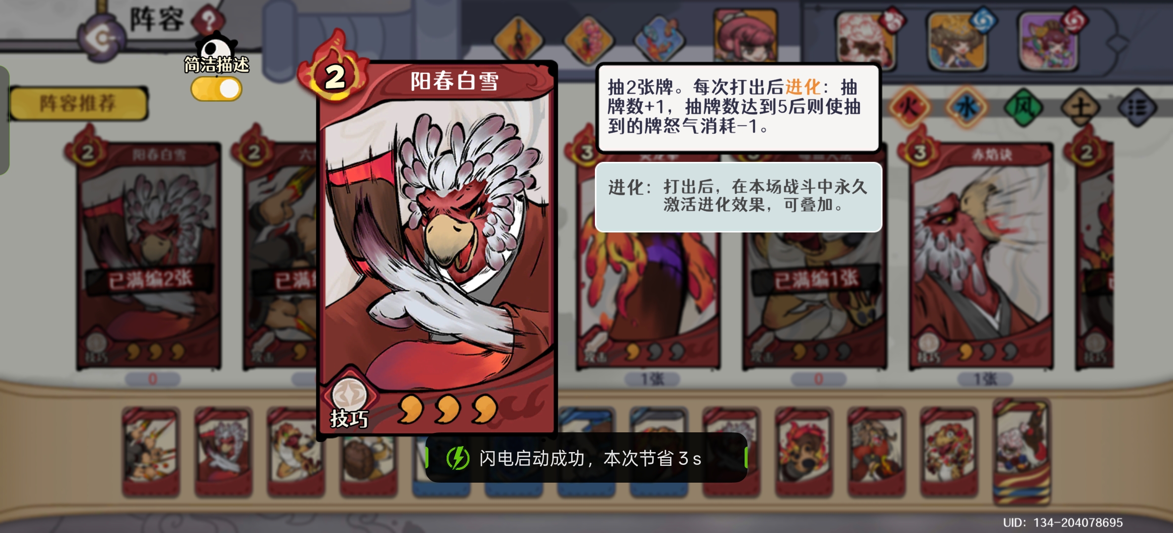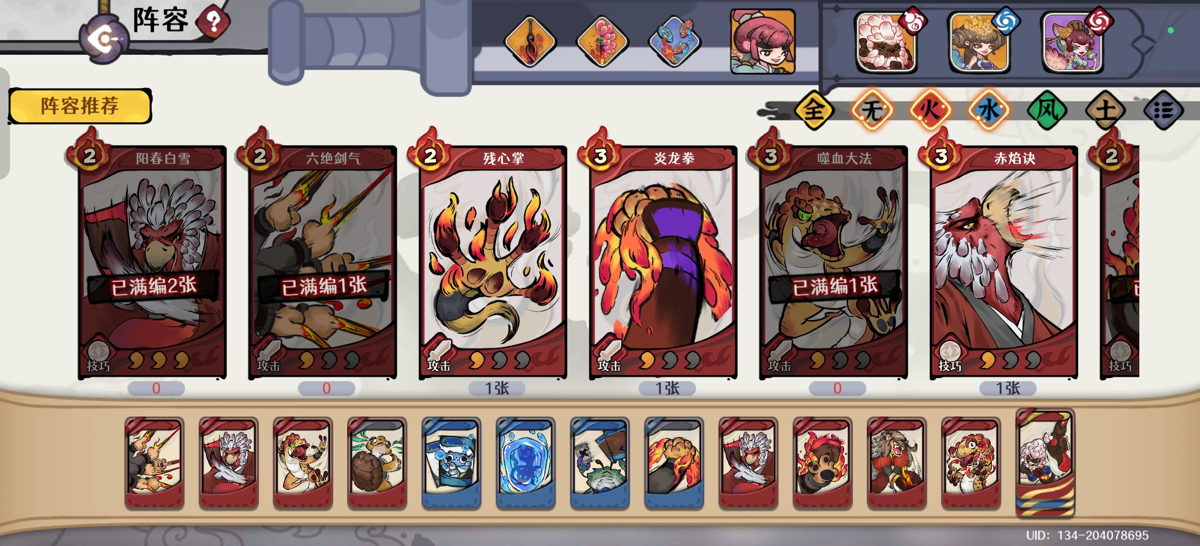 下面介绍一次打幻境或者其他副本时的过牌思路,我觉得这个也很重要,因为刚开始玩的时候,很多过牌机制都不太明白,就看费用少或者其他的能打出去就行,到最后发现其实浪费很多输出。核心观点刚才也说了,就是找到弱水三千,怎么找呢,关键在于《至阳无极功》的使用。