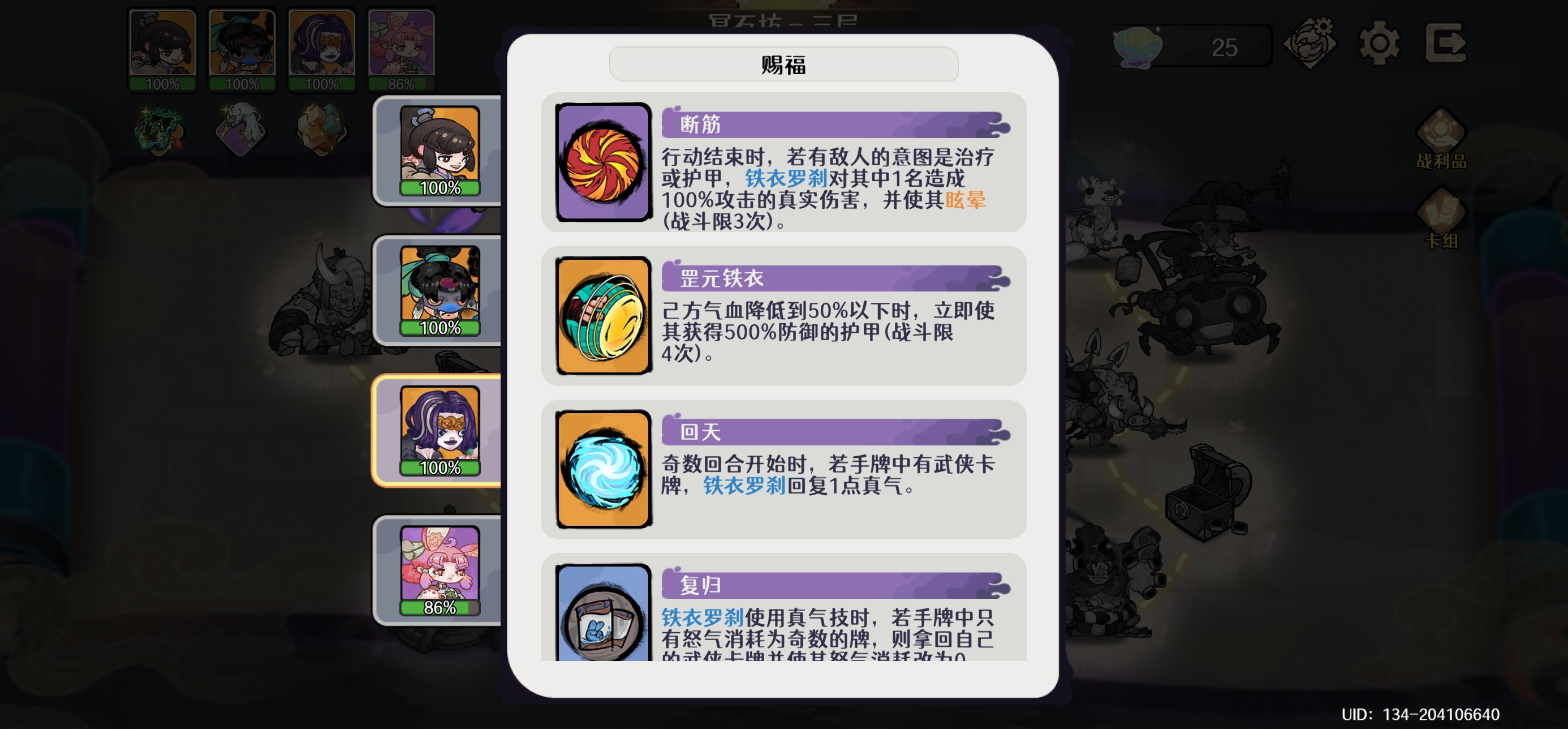 打法:刷到免费打出二费词条的卡:手上攒点二费卡就打,利用传人武学减费把风神腿和青云剑法费用砍到两费,再用免费打出去,牌库十二张牌,手牌上限十张,手里捏点抽牌牌词条稍微带点回怒或回真气,实现无限动,一般第一层牌没来的时候会有点刮但到第二层基本上就已经凑的差不多了,可以一回合无限刮死。传人真气技筋脉点到三级一次回六怒,二命一次回十二怒,所以最好满手牌开技能,能抽二命就抽二命,回怒是质变。