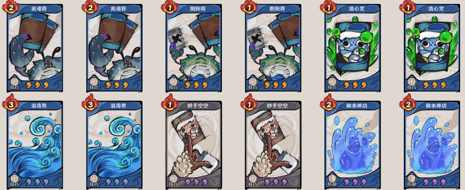 9张过牌:2离魂符、2阴阳符、2清心咒、2妙手空空、棋圣武学