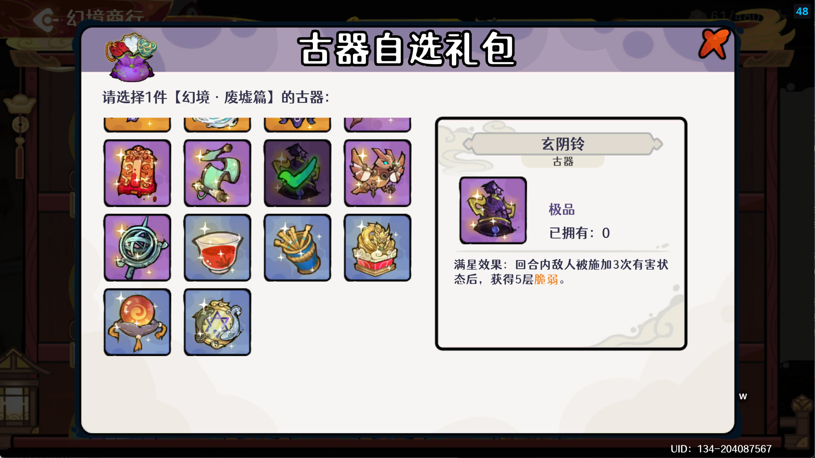 由于每个人对游戏理解不同,如果觉得我推荐的古器不太适合你的阵容,那请以你的选择为准哈~