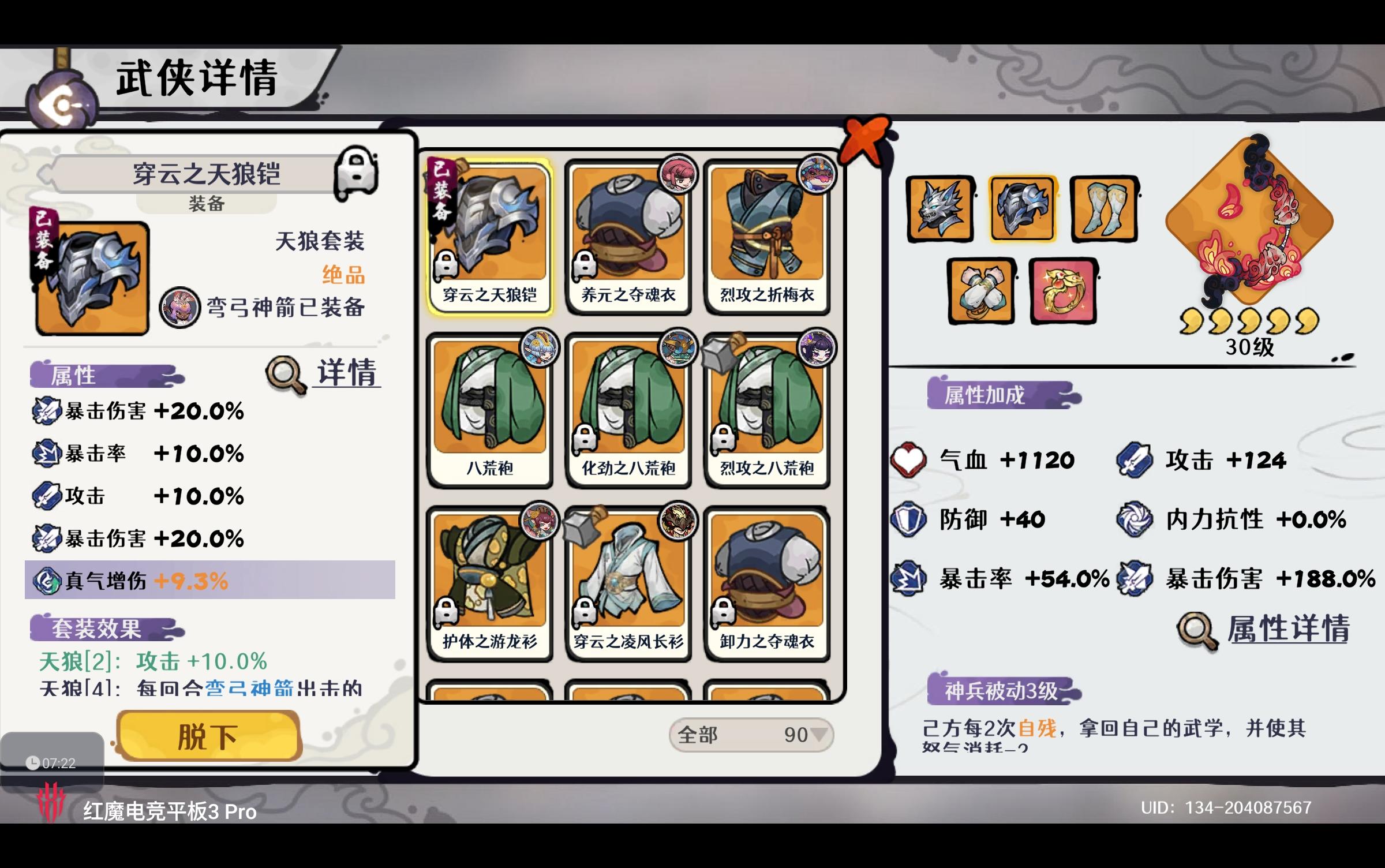 1、 由于天山灵童经脉点满效果为 【所有武侠的暴击伤害+8%】建议所有人抽取一个本体。