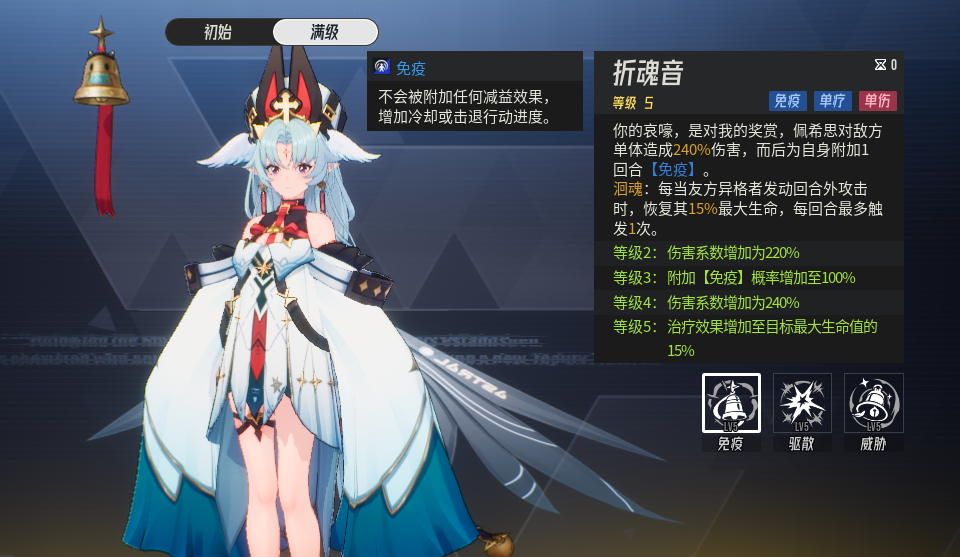 专属:【洄魂】每当友方异格者发动回合外攻击时,恢复其15%最大生命值,每回合最多触发一次
