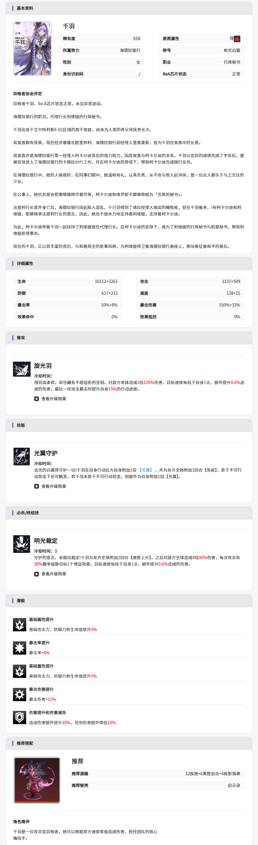 伊瑟【美梦 | 角色攻略】和光白翼 · 千羽