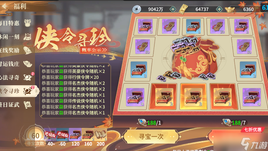 侠令夺宝建议等有排名活动时候再抽,只抽七折的。氪金大佬也留一些冲排名比较合适。