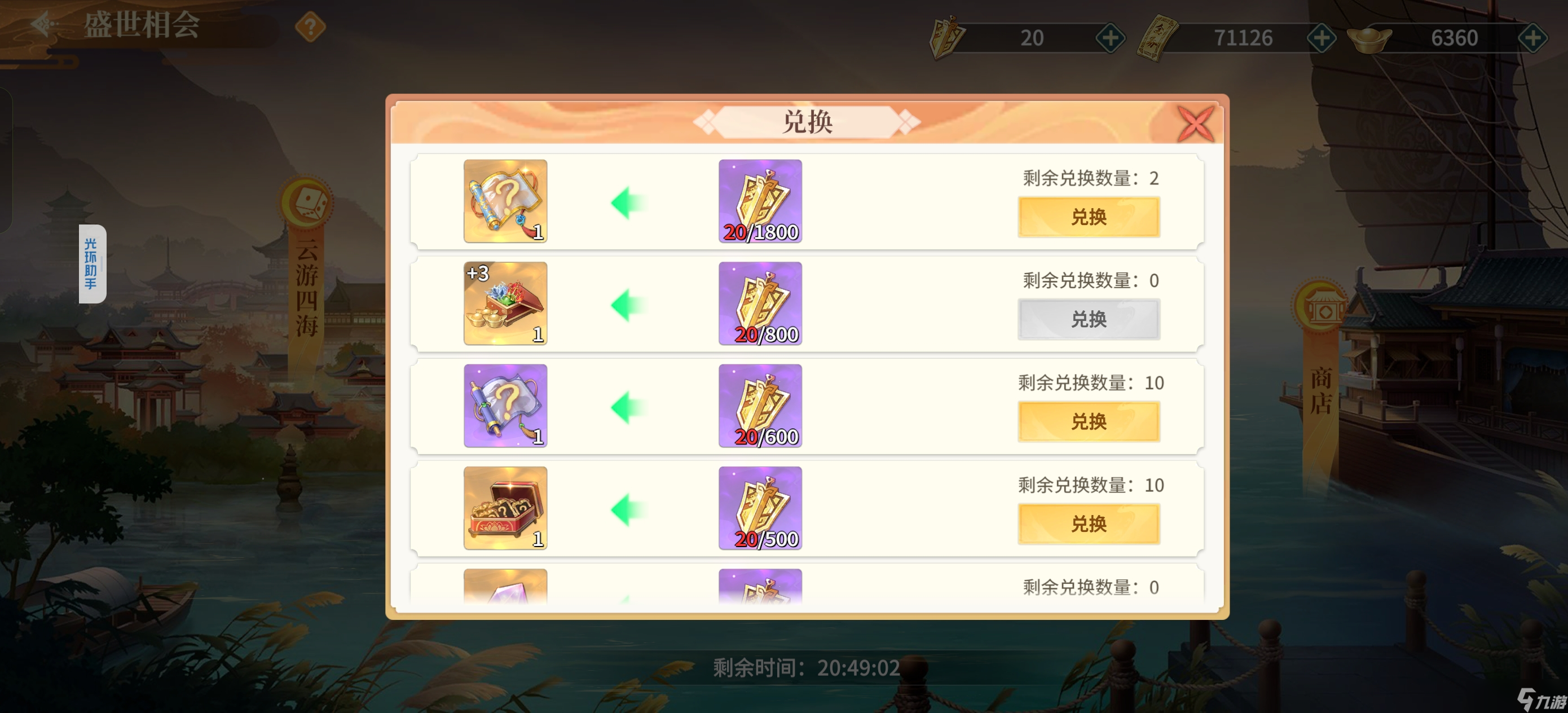 皇朝奖励主要是抽卡资源,商店里有打折的秋水令和斗酒令,因为现在的秋水斗酒都不值钱,能抽的侠客都是过渡侠客,所以平民就不要花金券了。