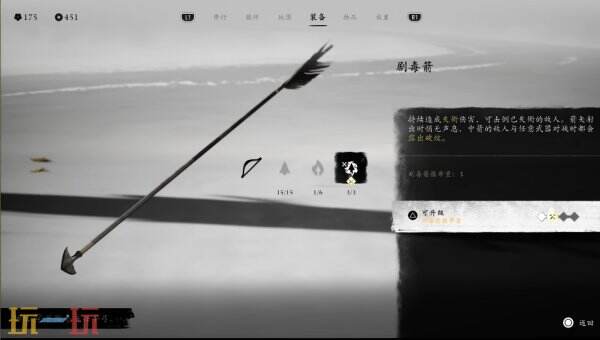剧毒箭:持续造成失衡伤害,可击倒已失衡的敌人。箭矢射出时巧无生息,中箭敌人与任意武器对战时都会露出破绽,适用于半弓