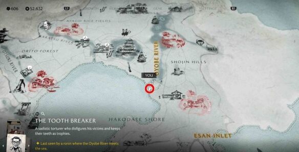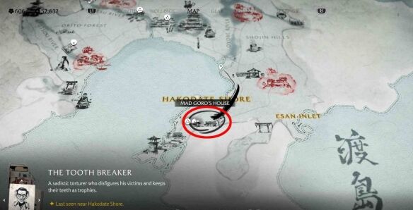 《羊蹄山之魂》渡岛海岸悬赏目标断牙者的任务,可在松前居所公告板接取,需前往及部川南边海岸线入海口处,与营地旁的浪人交谈,再向东南走到箱馆海岸的疯五郎之家,靠近后屋内的人会逃跑,疯五郎(主线【恶鬼】相关通缉目标,曾为狼伴无法击杀)会现身,击杀抵达的所有浪人后放走疯五郎,即可完成任务并获得 750 钱币。