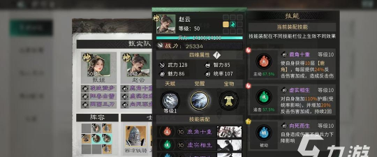 他的追击技推荐去带虚实相生,这能为自己施加上104.5%的护盾,并提升19%反击伤害加成,上限为3层能持续2回合,这个护盾加反击伤同样和赵云契合度非常高,最后的被动推荐带鹿角十重。