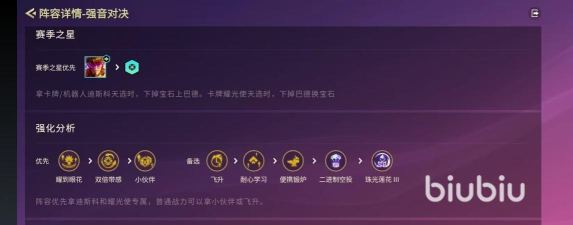 阵容中的关键棋子也获得了全面加强,其中卡牌作为主C位表现尤为突出。其技能伤害系数得到显著提升,蓝条长度优化后,技能启动节奏更快,在团战中不仅能打出范围伤害,还能有效压制敌方主力输出单位,完成残局收割。配合羁绊提供的高速普攻,整体输出效率大幅提升。