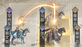 此外大家也可以将张辽换成张飞,张飞在有着不俗输出能力的同时,还能给敌方添加上虚弱效果,减轻我方的压力,也是非常适配的注意实战将马超放在张飞和蔡文姬的追击格上,形成以马超为主c的队伍。