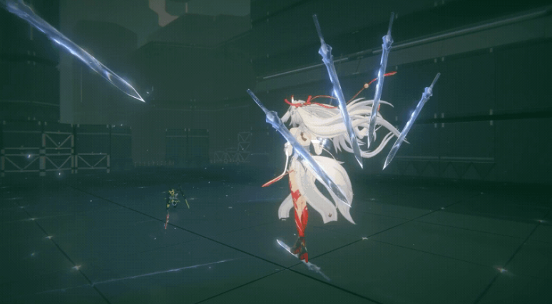 她的“飞光”能在明心镜状态下通过长按特殊技发动,此时会持续消耗剑势发动快速斩击,对敌人造成大量的物理伤害,若拥有观止效果,能让观止代替剑势的消耗,她的归尘能在剑势耗尽时通过长按特殊技使用,此时会对大范围内的敌人造成大量伤害。