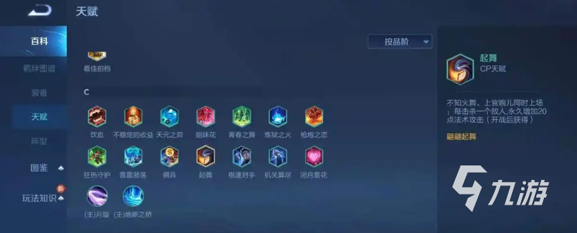 这样在实战中不管是去凑远法、女刺还是近法都是相当不错的,天赋上一定要选的就是起舞,起舞能让火舞、婉儿每成功击杀一个敌人,就永久增加20点法术攻击完美契合养猪,此外可以拿可上阵人数加1的扩军,上个宫本凑个三扶桑,另外也可以拿嗜血之影和混乱之术。