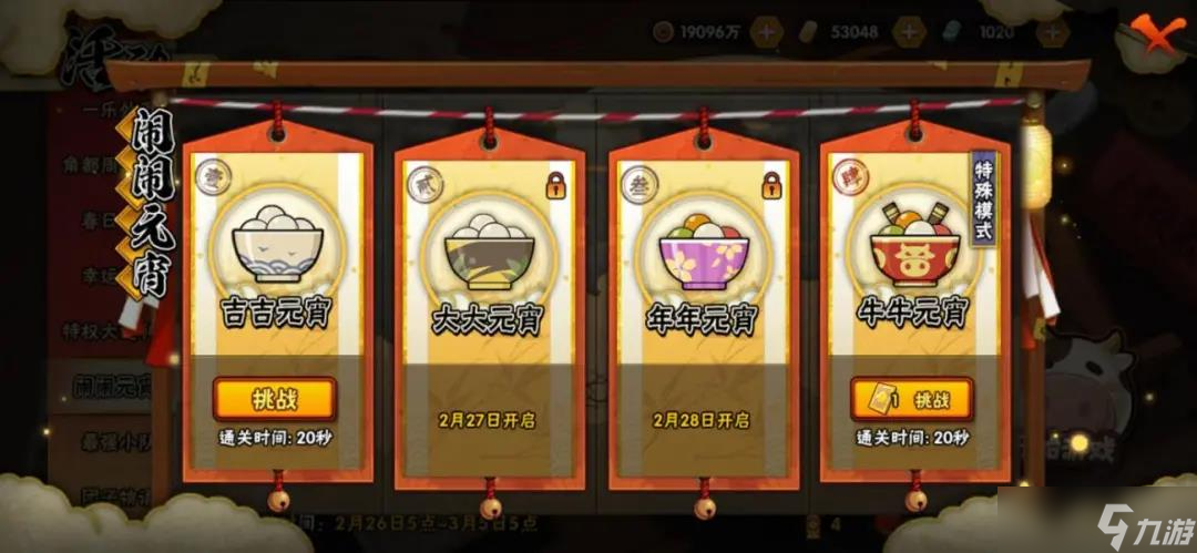 1、每天能开三个元宵:吉吉、大大、年年,每个限开一次。第一关36秒内通过,就能拿牛牛元宵挑战卡,开启特殊模式。2、开局要快,先把筷子和扇子点开,然后猛点碗,筷子扇子快碰到碗时更要狂点,元宵就多了。3、要是36秒完不成,先做成就奖励任务,拿灯笼爆竹再去挑战吉吉元宵,会轻松点。4、牛牛挑战卡不值得买,一局也就300万铜币,性价比太低。