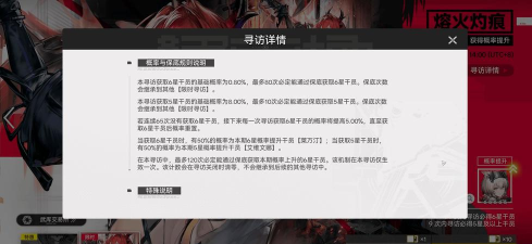 熔火灼痕卡池隶属于限时寻访的范围之内,解锁条件需要与玩家的主线任务进行关联,在完成指定的基础主线关卡之后就可以解锁并参与寻访,卡池的参与方式主要分为两种,既可以使用专属的寻访凭证进行兑换抽取,也支持消耗游戏内的通用货币直接参与,玩家可以选择自己最适合的方式来抽取,跟游戏内的常规常驻卡池相比,熔火灼痕卡池的核心差异就在于对特定星级干员设置了更高的概率提升机制,可以提高玩家获取核心目标干员的可能,卡池具备独立的保底技术机制,在后续可以帮助玩家累积寻访的进度。