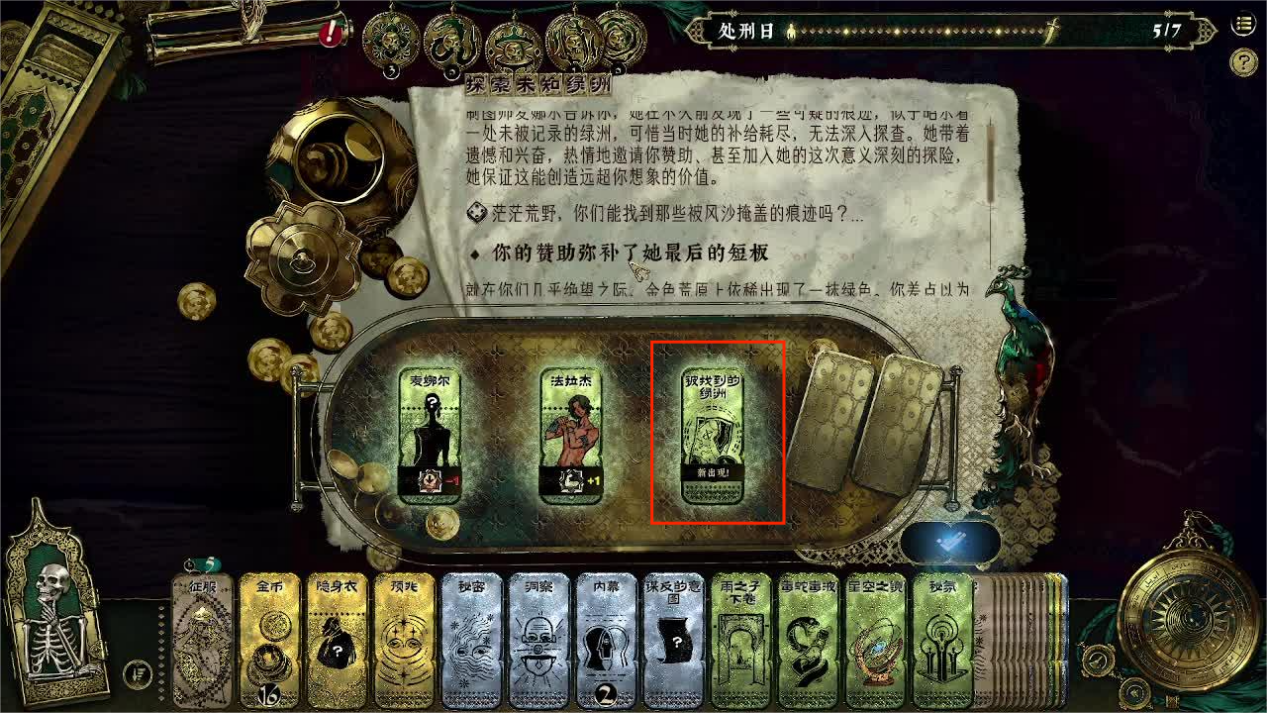 该任务需要跟随的追随者拥有足够的生存以及至少3金币,为了保险可以多放一个消耗的物品,例如银洞察来减少需要sl的时间。任务完成之后可以得到物品【被找到的绿洲】,该物品可以放进治理家业可以获得额外的金币。